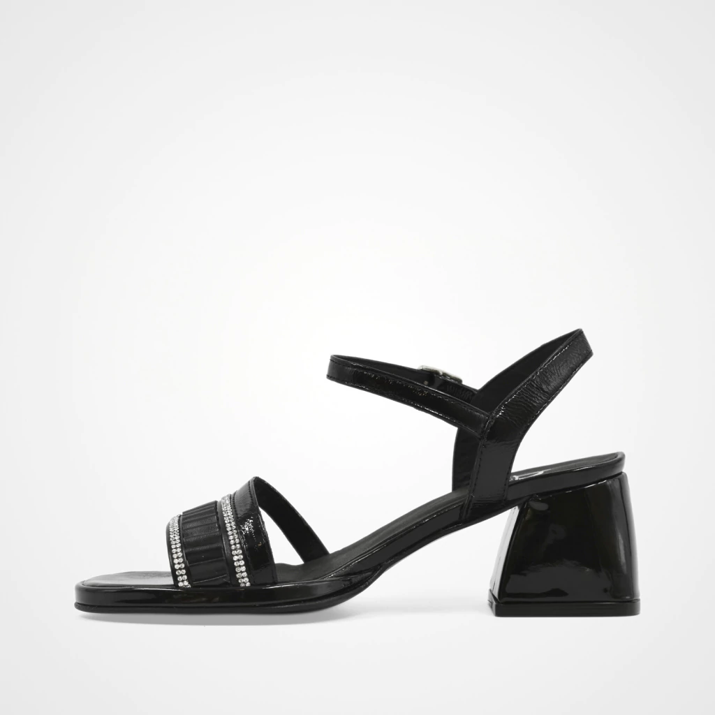 La sandalia Ozlem es sinónimo de elegancia y comodidad. Su diseño en charol negro, junto con la plataforma sutil y el taco cómodo, la convierten en una aliada ideal para acompañarte en todos tus looks.